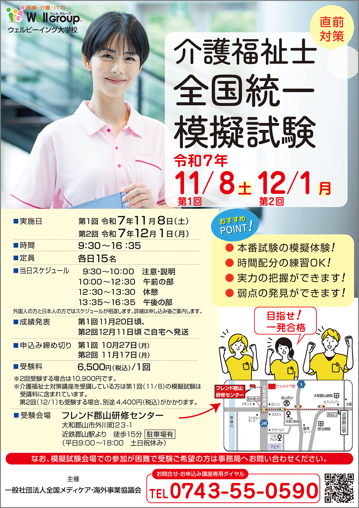 ※介護福祉士対策講座を受講している方は第1回(11/8)の模擬試験は受講料に含まれています。